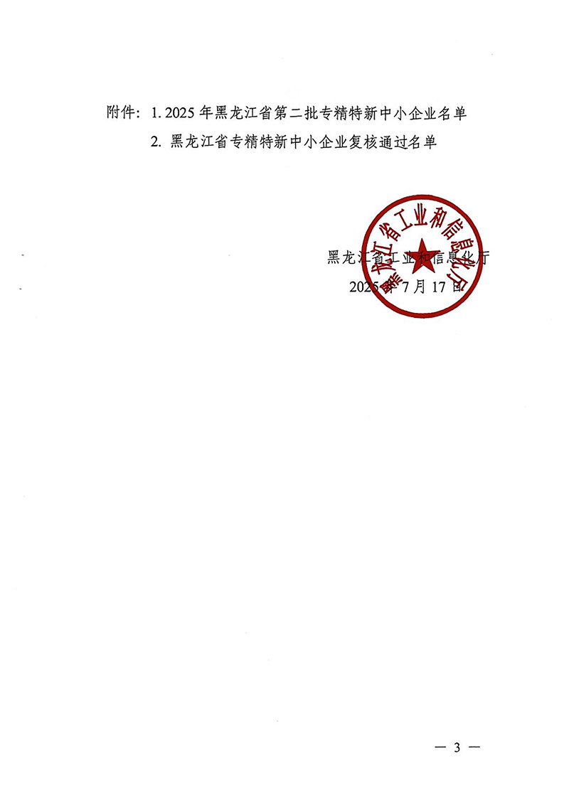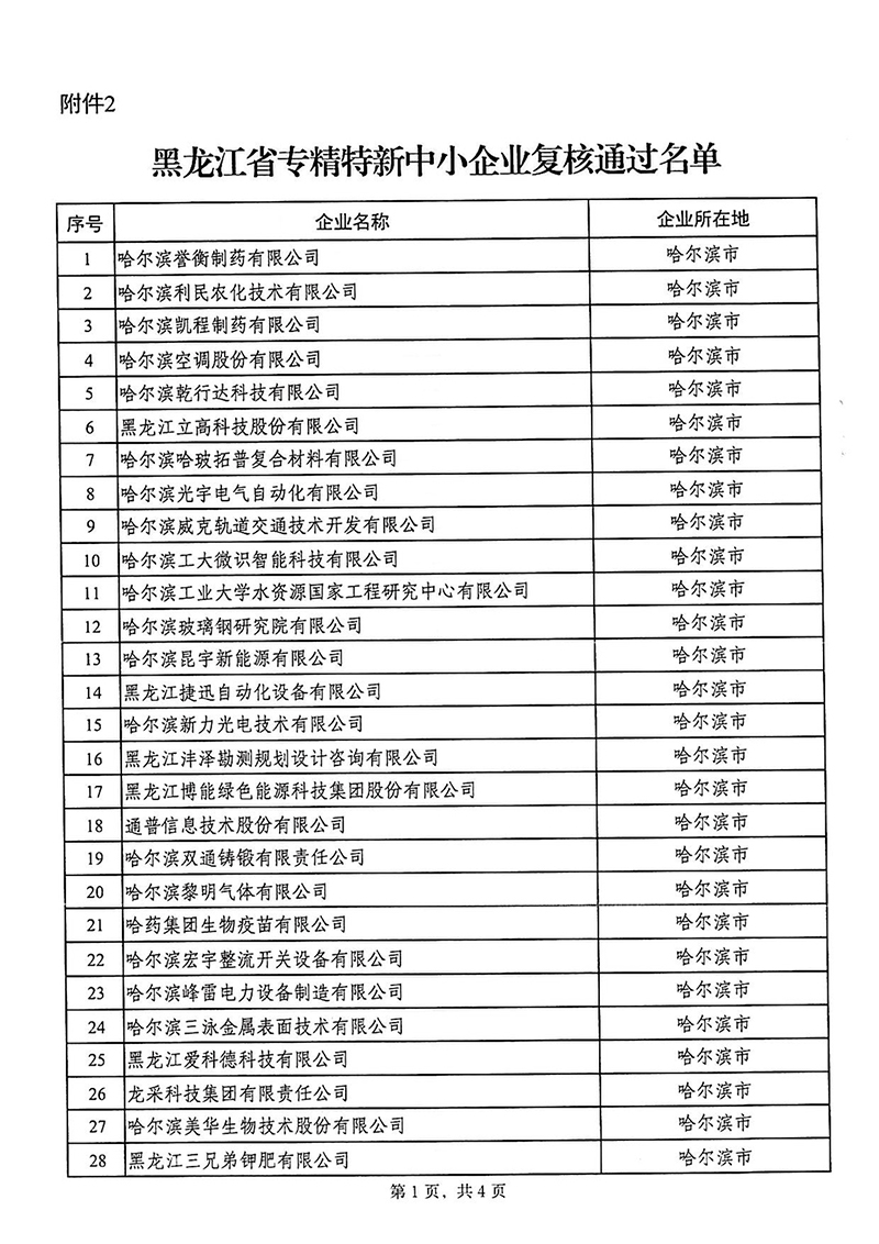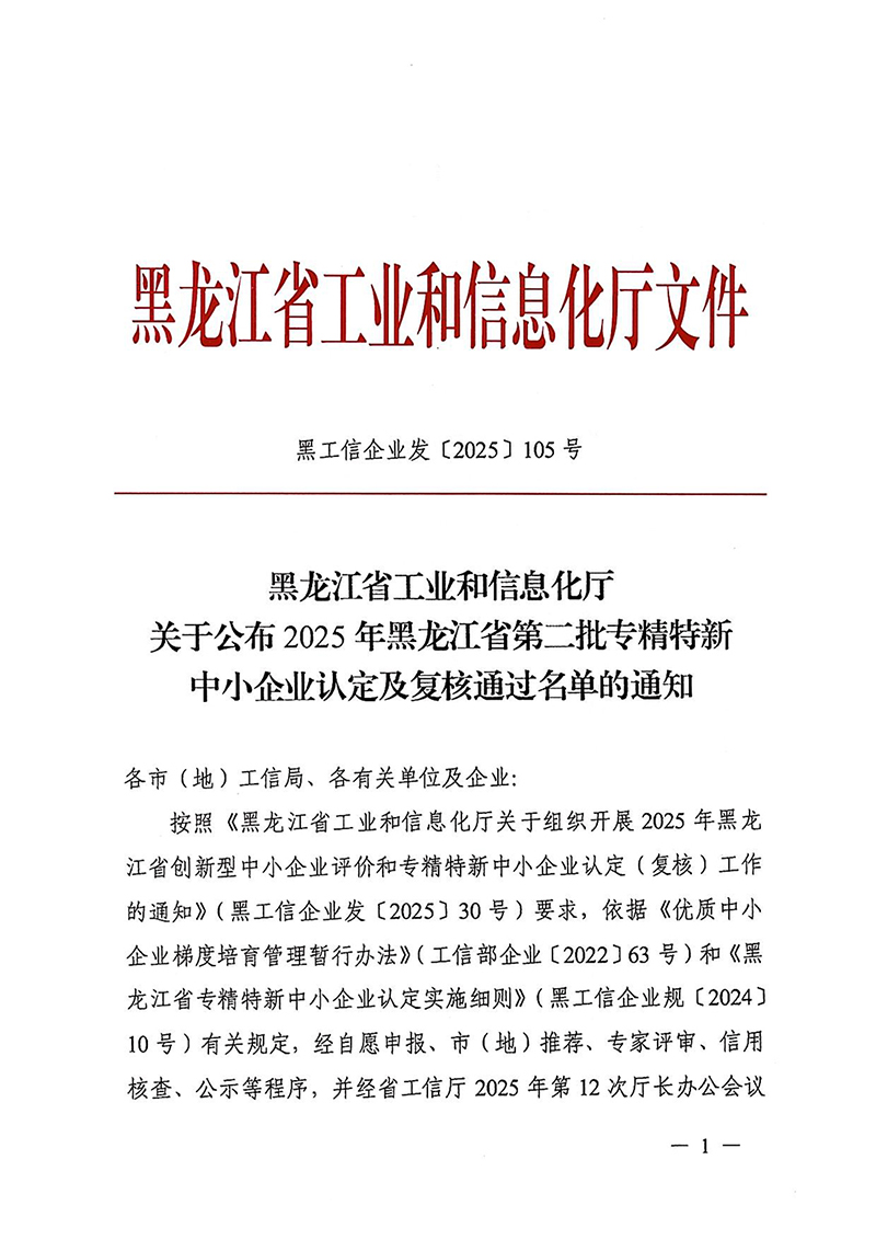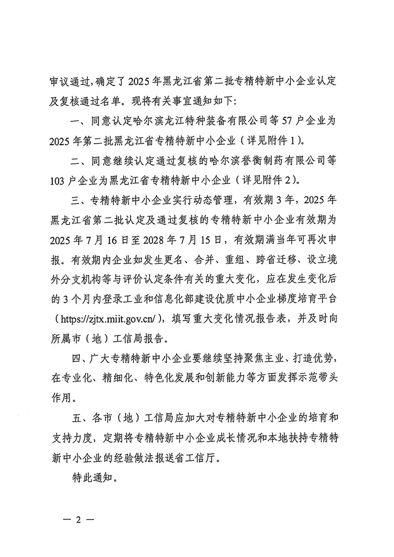 关于公布2025年黑龙江省第二批专精特新中小企业认定及复核通过名单的通知