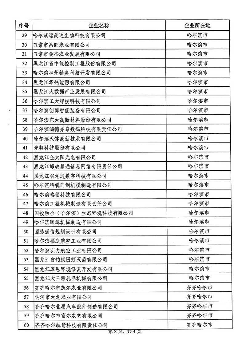 关于公布2025年黑龙江省第二批创新型中小企业名单的通知