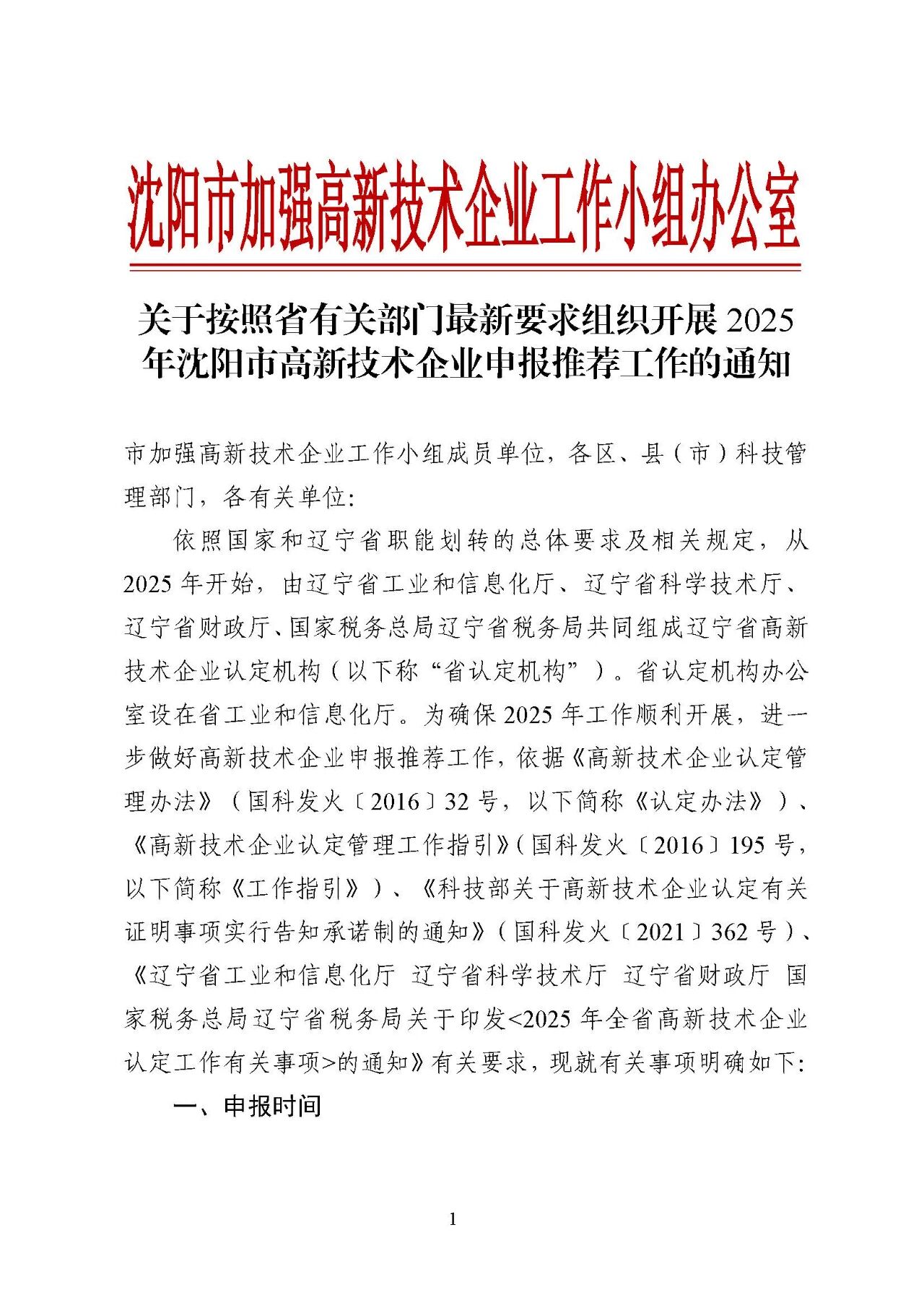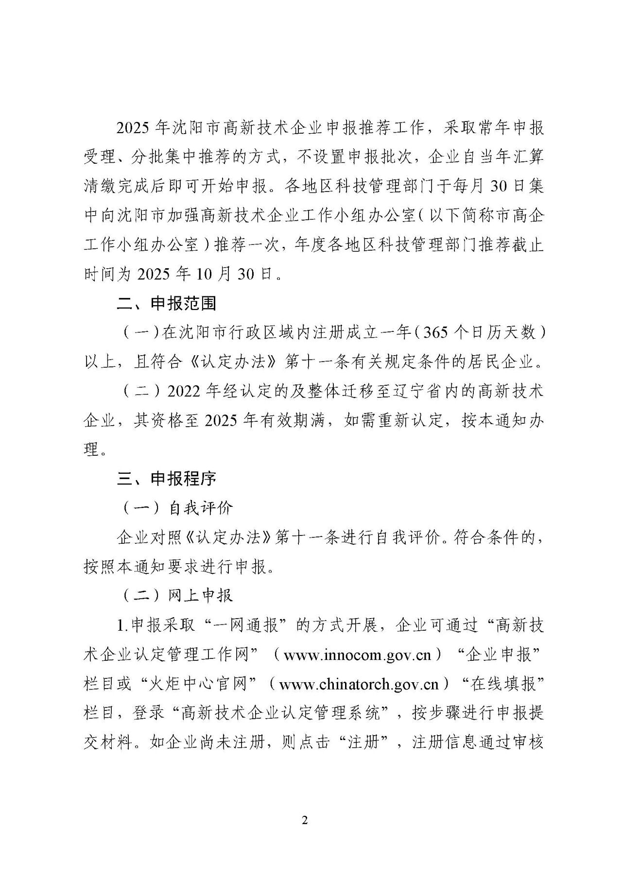 关于按照省有关部门最新要求组织开展2025年沈阳市高新技术企业申报推荐工作的通知