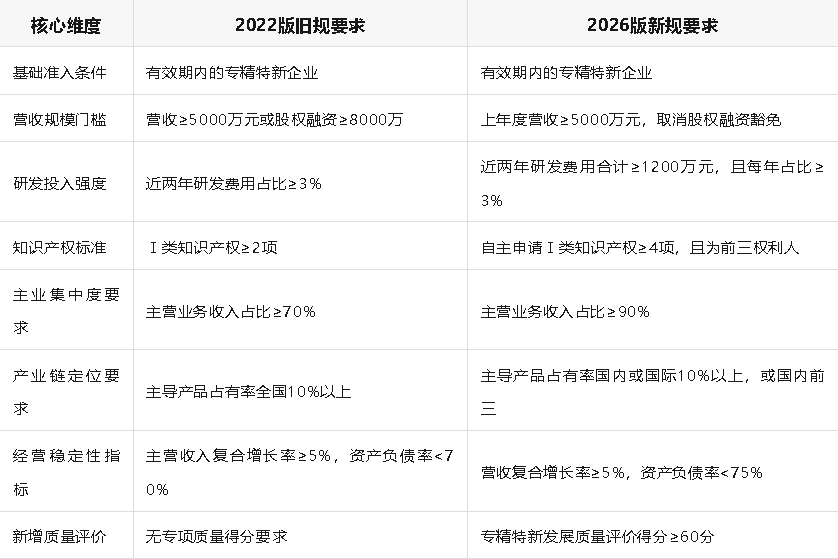 1.专业化指标:门槛大幅收紧主业聚焦度升级:主营业务收入占比从70%提升至90%,强化主业深耕要求。
