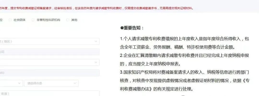 专利费减备案系统界面有所变化,在费减系统页面右侧出现了告知事项: