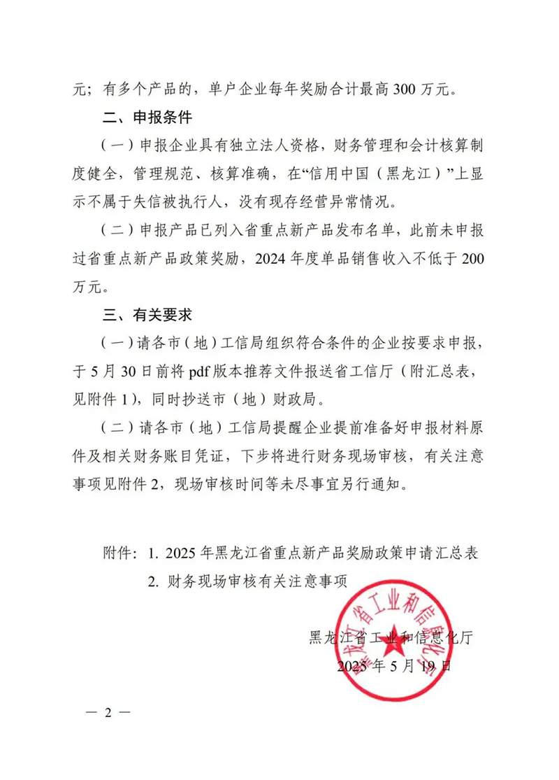 关于开展2025年黑龙江省重点新产品奖励政策兑现的通知