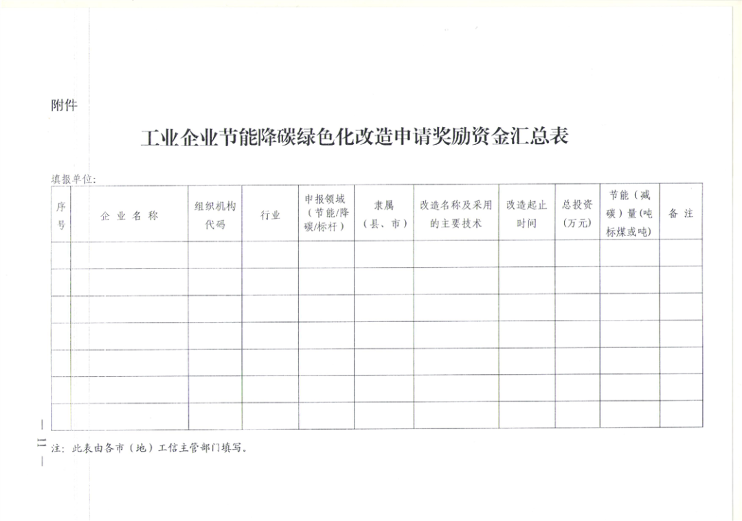 关于申报2026年工业企业节能降碳绿色化改造奖励资金的通知